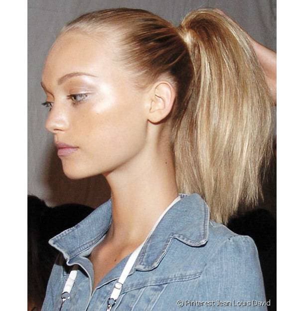Comme son nom l’indique, elle ne doit être ni trop haute, ni trop basse avec un point d’attache à l’arrière de la tête. L’ensemble de la chevelure est lissée, alors que les racines sont plaquées sur le crâne. Les petits cheveux rebelles sont quant à eux domptés à l’aide d’un peigne fin et un peu de la laque. Osez porter cette coiffure chic et moderne aussi bien en journée qu’en soirée, elle est parfaite pour dégager votre visage et mettre en valeur un make-up élaboré.